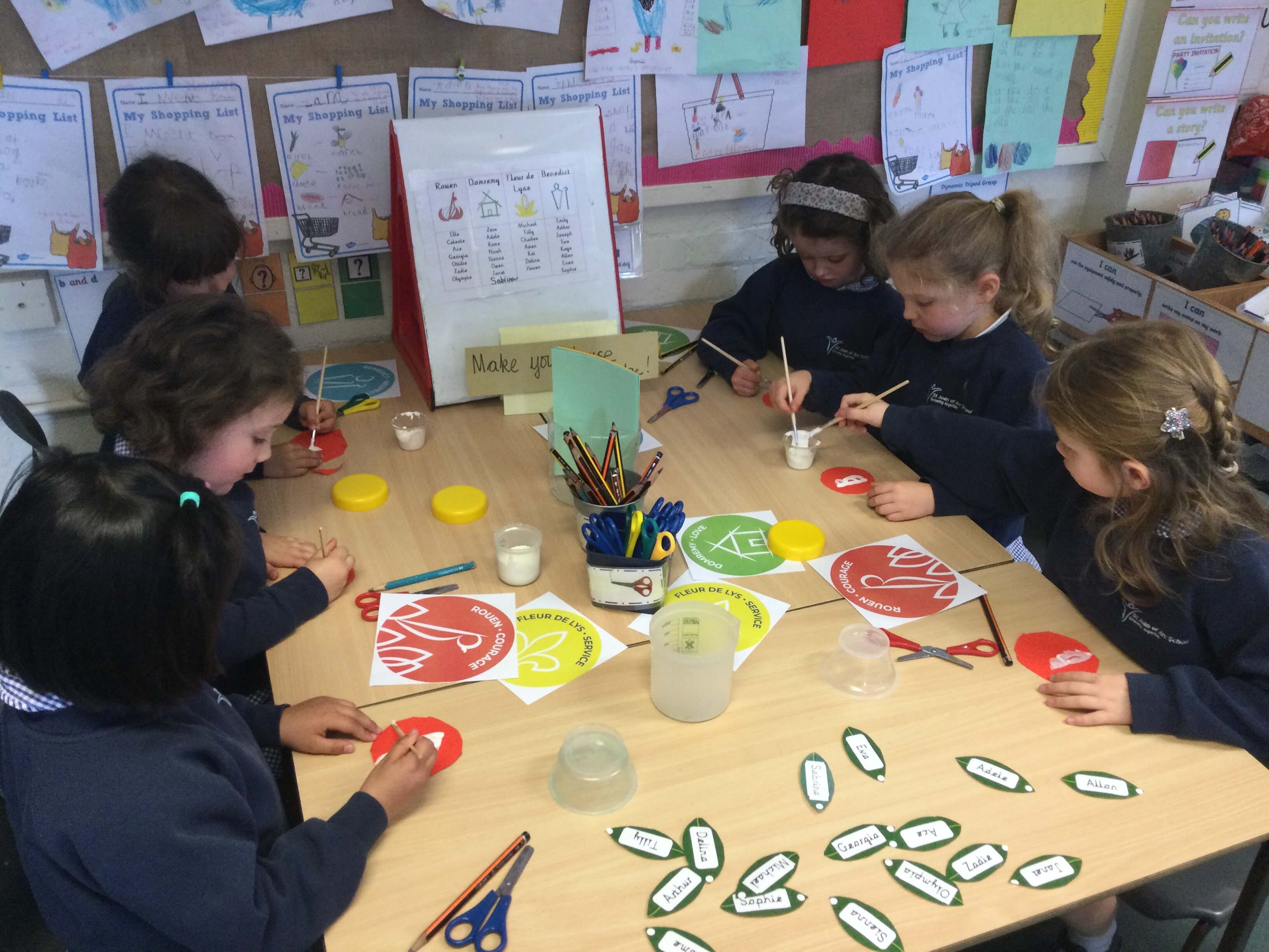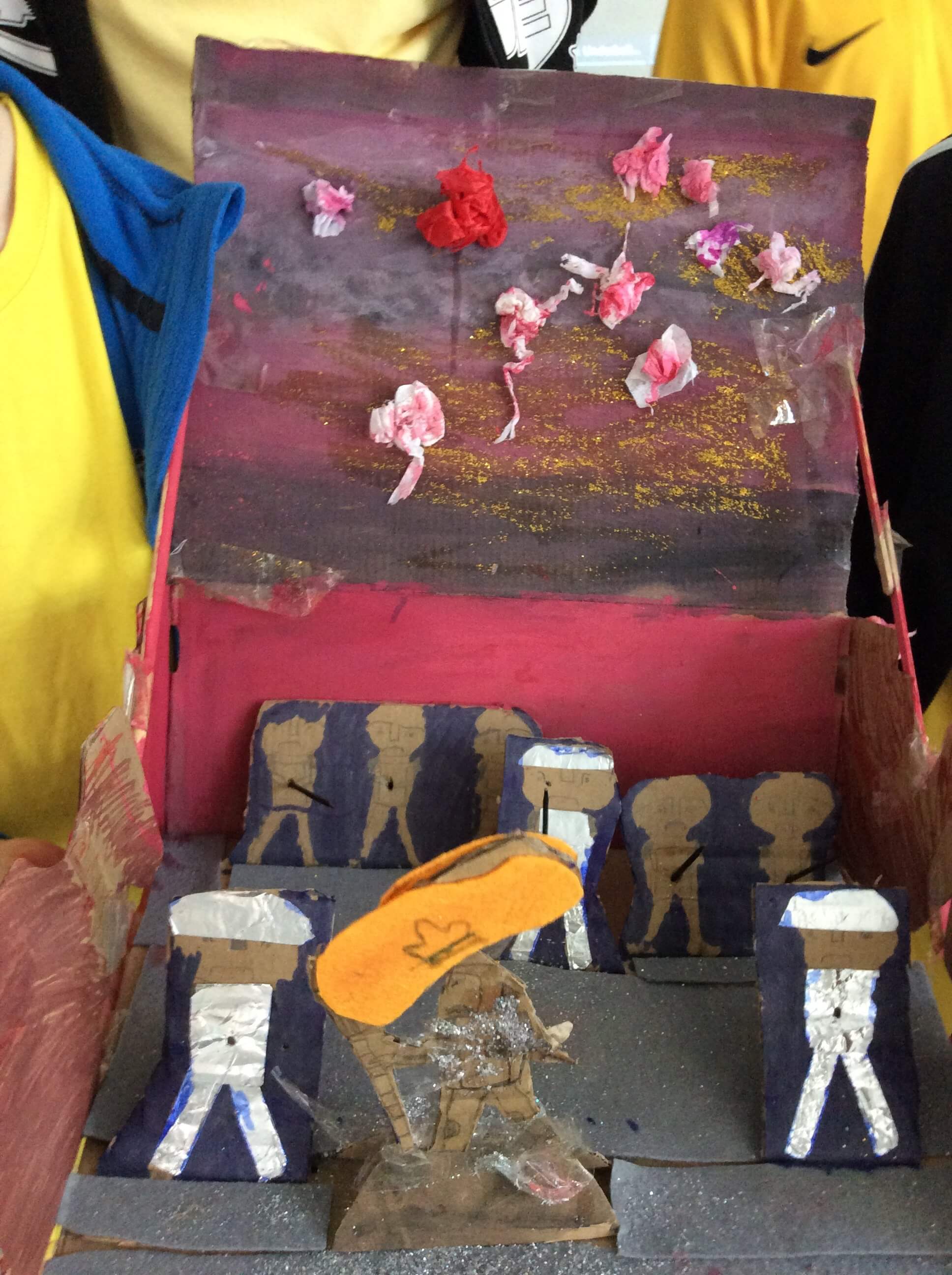 Used recyclable materials to create dioramas representing the 4 houses – her home in Domremy, flying the Fleur de Lys in battle, her death in Rouen and her canonisation at St Peter’s Basilica by Pope Benedict.