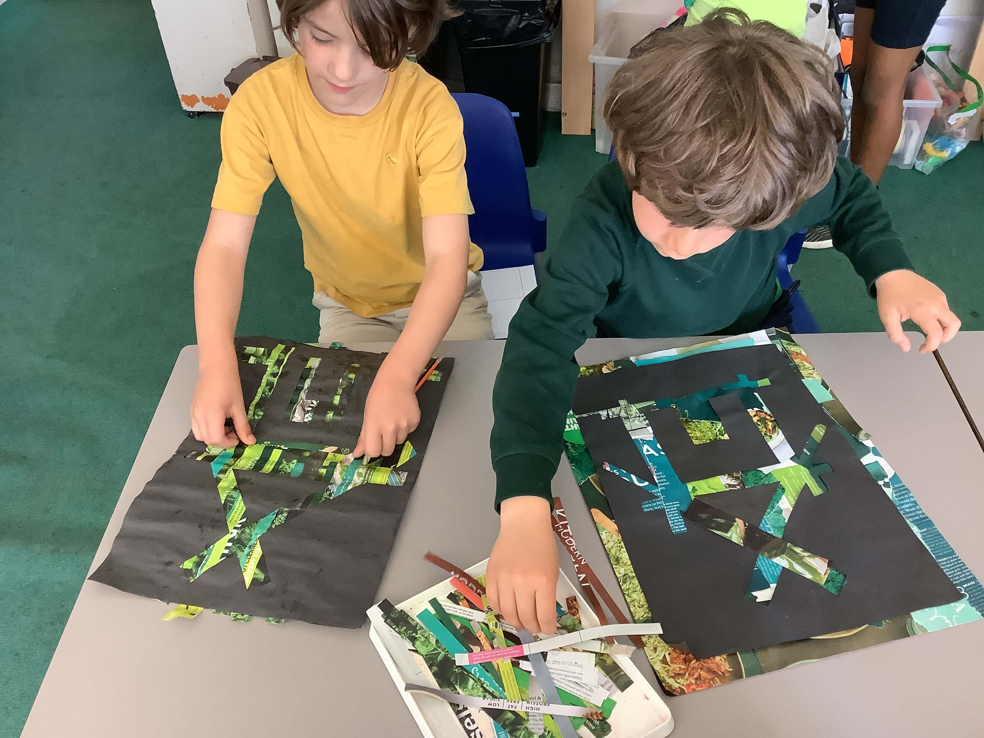 Created reverse silhouettes of the house logos using magazine pages.